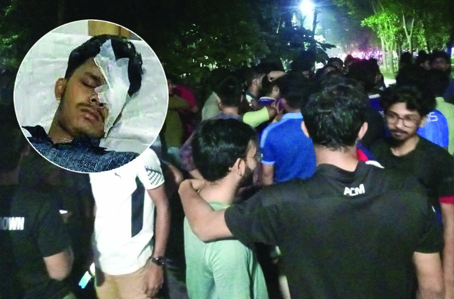 তখন দুজন শিক্ষার্থী আহত হয়। সংঘর্ষ চলাকালে পরিসংখ্যান বিভাগের শিক্ষার্থীরা মার্কেটিং বিভাগের শিক্ষার্থীদের ধাওয়া দিলে আত্মরক্ষায় একাডেমি ভবন-৩ এর সমাজবিজ্ঞান বিভাগ ও মার্কেটিং বিভাগের কক্ষে আশ্রয় নেয় তারা। এ সময় পরিসংখ্যান বিভাগের শিক্ষার্থীরা জানালার কাচ ভাঙে ও টয়লেটে দরজা ভাঙে। ওই জানালার কাচের টুকরো নিলয়ের চোখে লেগে গুরুতর জখম হয়।